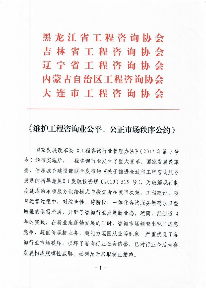 《維護(hù)工程咨詢(xún)業(yè)公平、公正市場(chǎng)秩序公約》