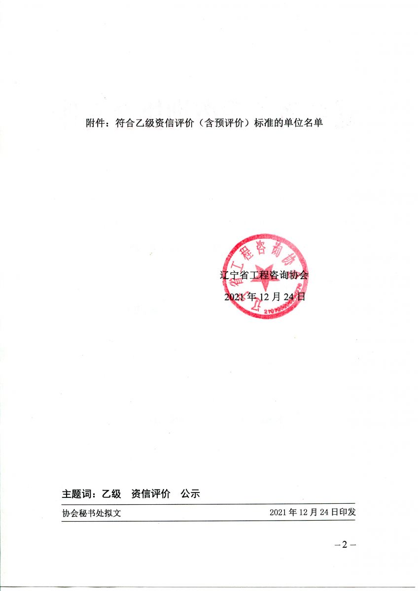 遼寧省2021年工程咨詢單位乙級資信評價(含預評價)結果公示