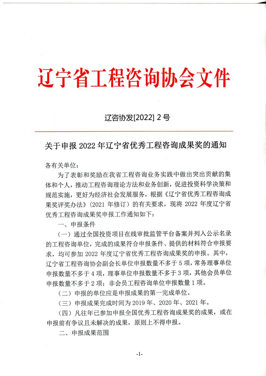 關(guān)于申報2022年遼寧省優(yōu)秀工程咨詢成果獎的通知