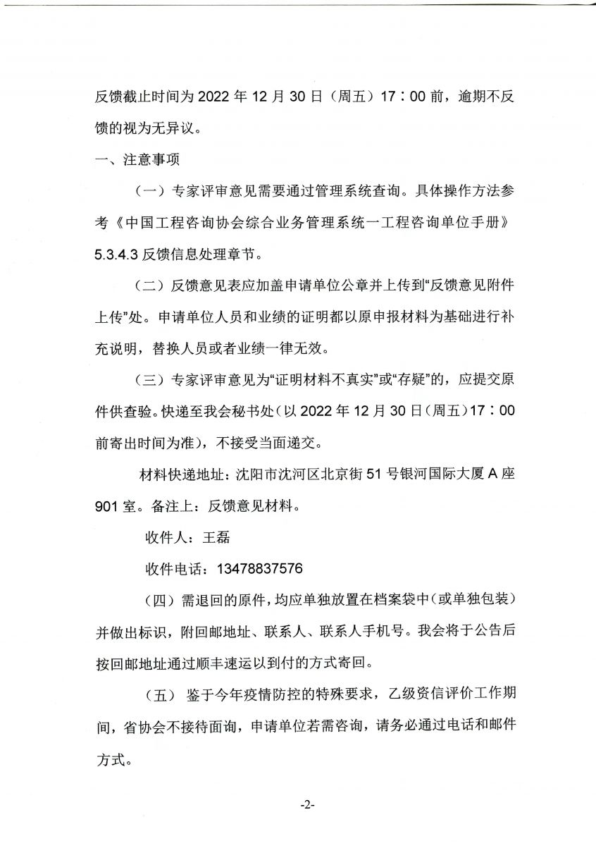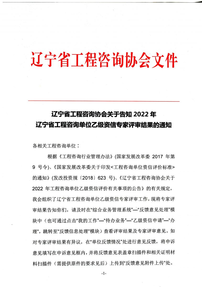 關于告知2022年遼寧省工程咨詢單位乙級資信專家評審結果的通知