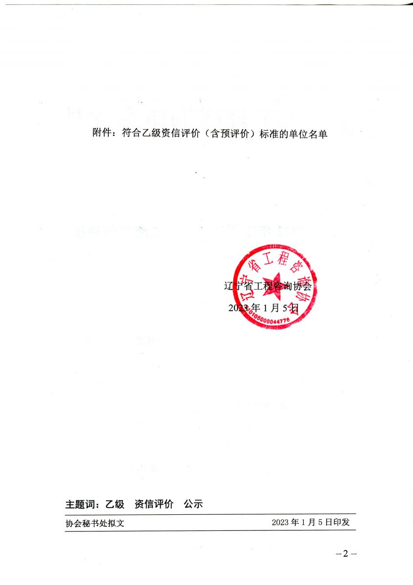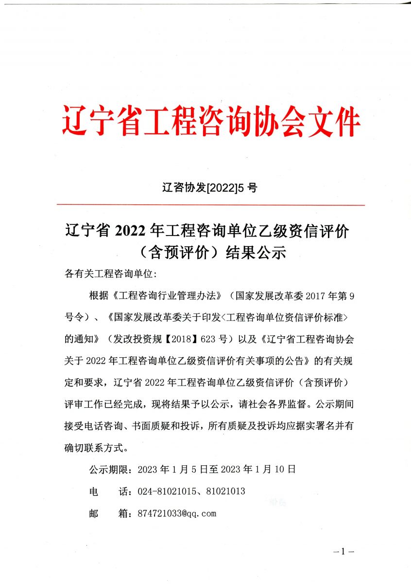 遼寧省2022年工程咨詢單位乙級資信評價(含預評價)結果公示