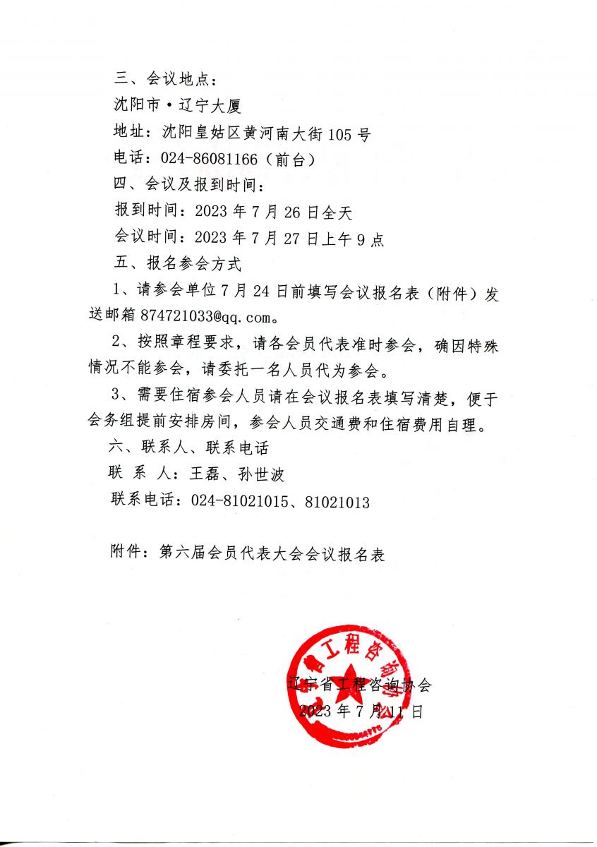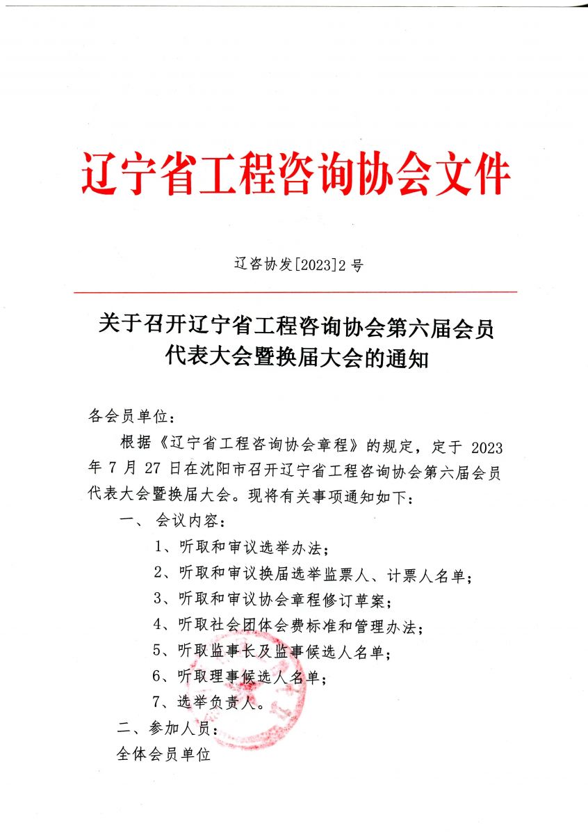 關于召開遼寧省工程咨詢協(xié)會第六屆會員代表大會暨換屆大會的通知
