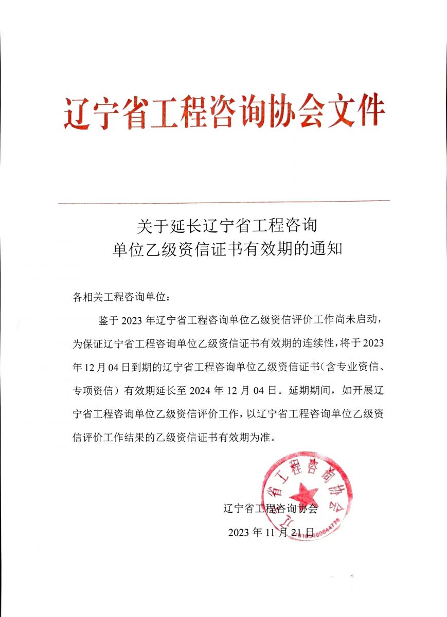 關(guān)于延長遼寧省工程咨詢單位乙級資信證書有效期的通知