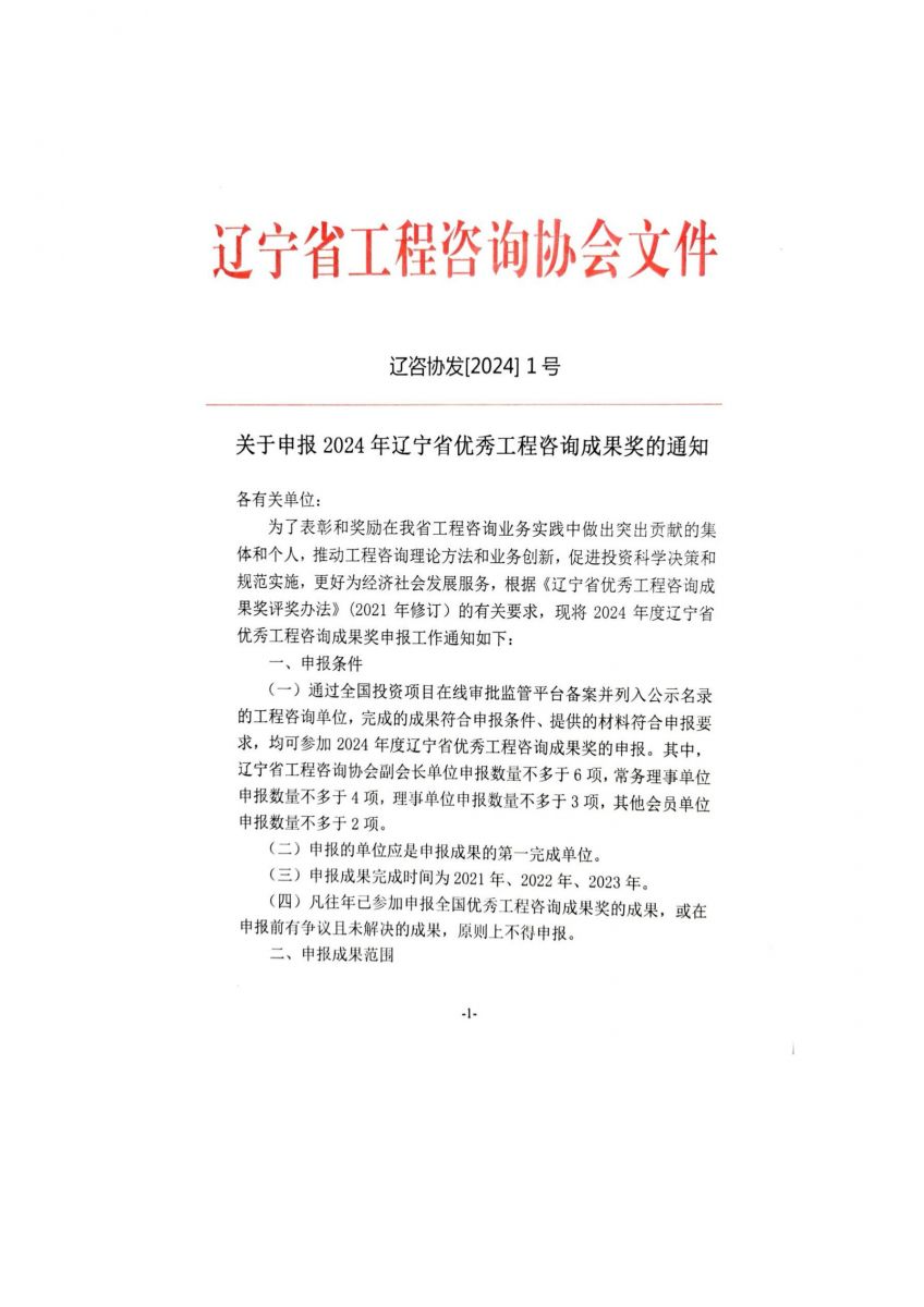 關于申報2024年遼寧省優秀工程咨詢成果獎的通知