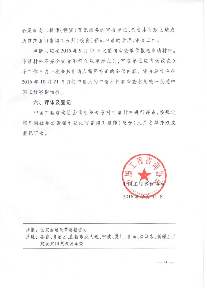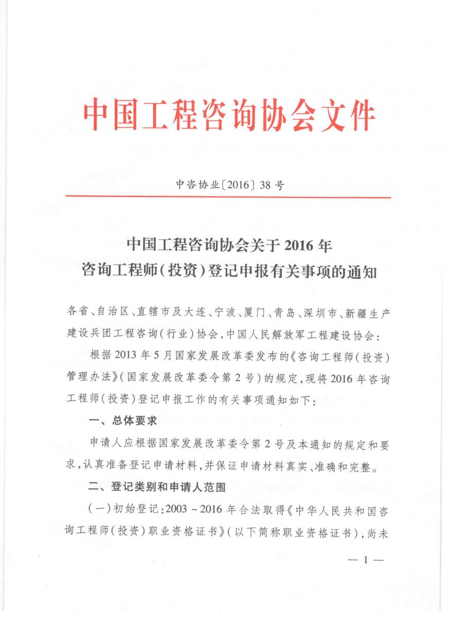 中國工程咨詢協會關于2016年咨詢工程師(投資)登記申報有關事項的通知
