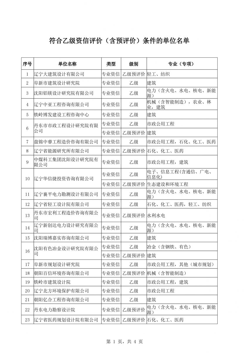 遼寧省2018年工程咨詢單位乙級資信評價(含預評價)結果公示