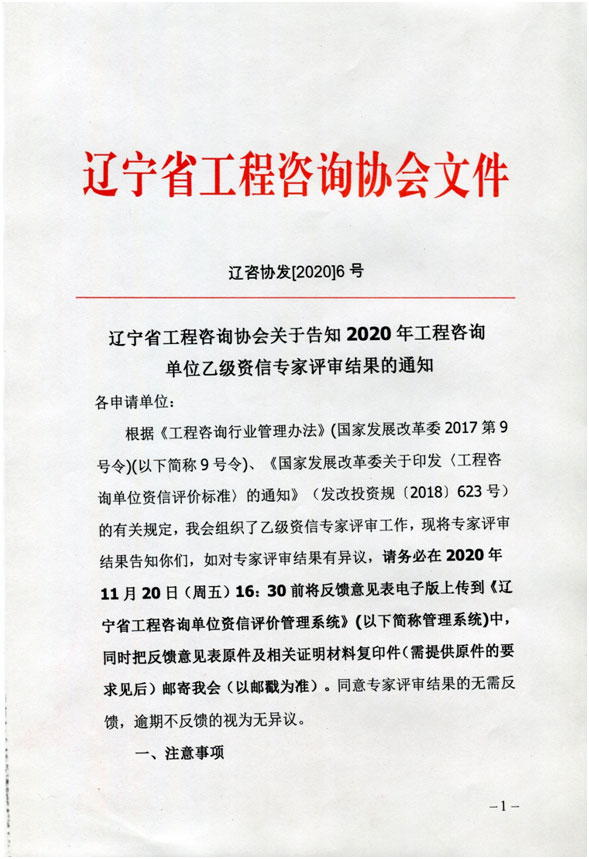 關于告知2020年工程咨詢單位乙級資信專家評審結果的通知