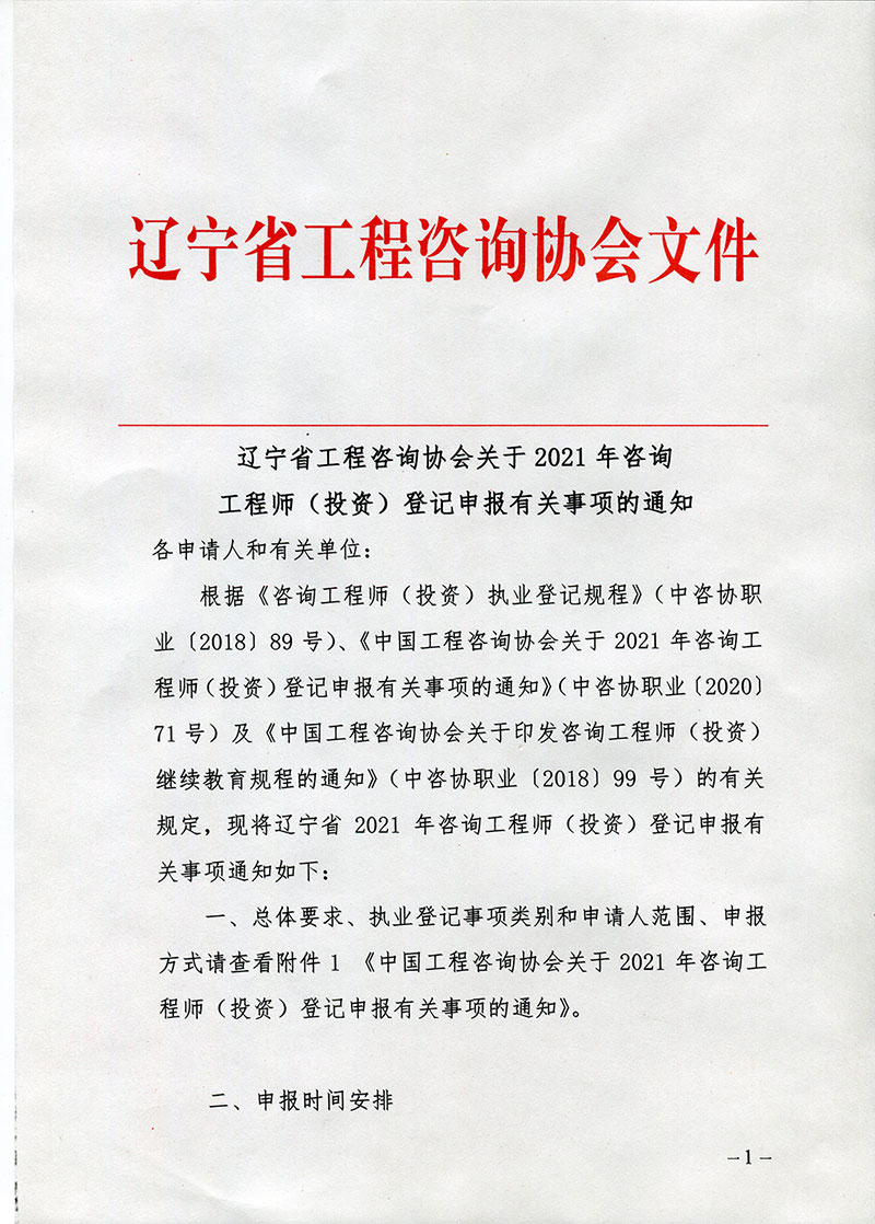 遼寧省工程咨詢協會關于2021年咨詢 工程師(投資)登記申報有關事項的通知